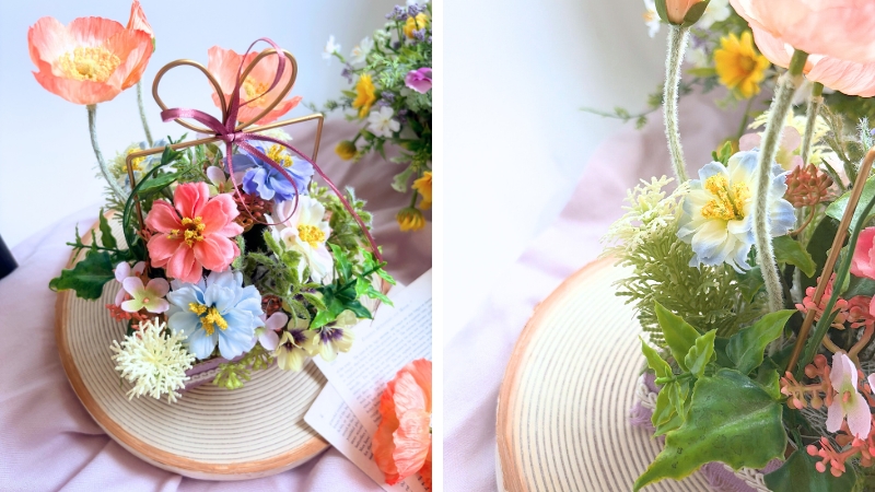 「可愛くなりすぎず、上品にまとめる」ための、色のトーンの合わせ方や花材バランスの取り方をレッスンではご紹介します。
