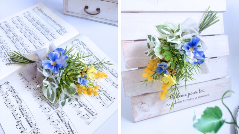 小さな春の喜びが溢れる2つのアレンジを、あなたのお部屋に迎えてみませんか?