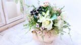 さらに、アレンジを飾る際、作品の下にインテリアマットやテーブルランナーなどを敷くと、より雰囲気が出てグッと素敵になります。