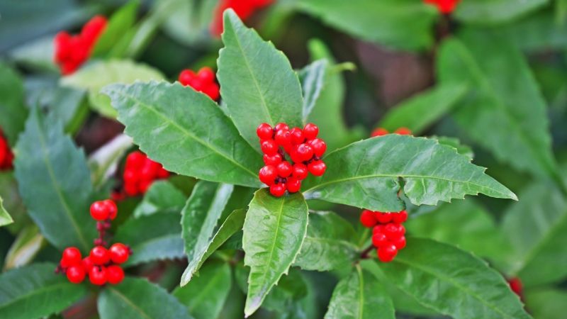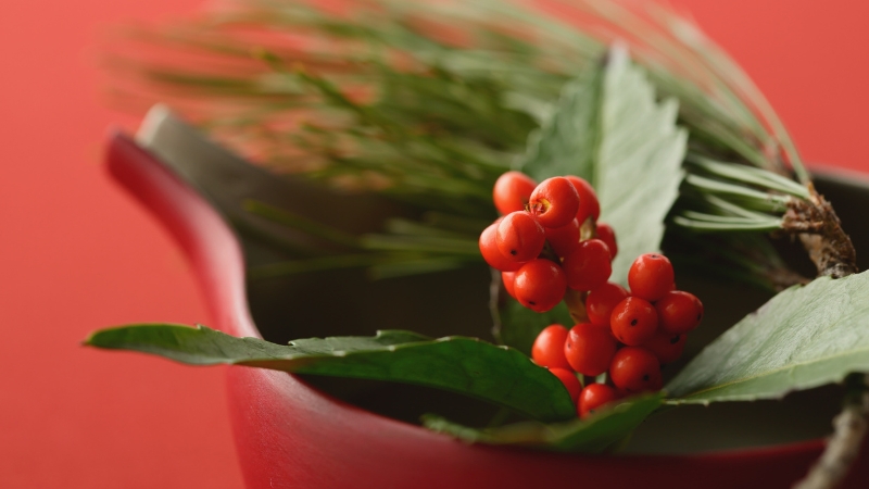 お正月の玄関飾りや生け花に欠かせない、鮮やかな赤い実の植物。